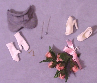 - bouquet of pink roses, tied with pink ribbon and elastic band for holding