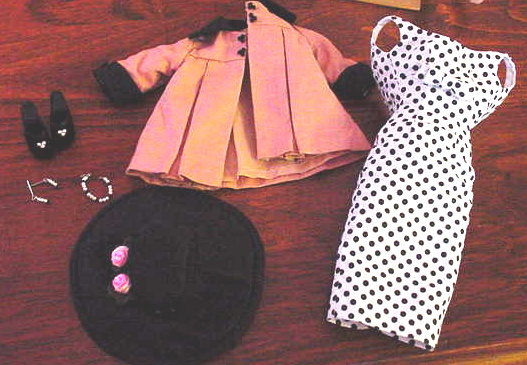 - Salmon jacket with black collar and cuffs. 4 clusters of 3 black
