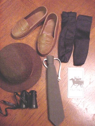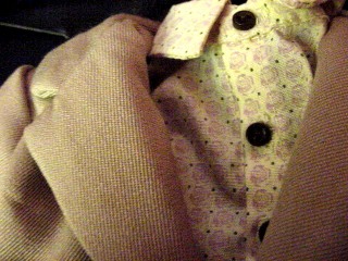 - Tan suit jacket with 2 black buttons and 2 pockets. 3 black buttons