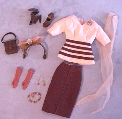 brown stripes around waist. Ribbon corsage attached.
