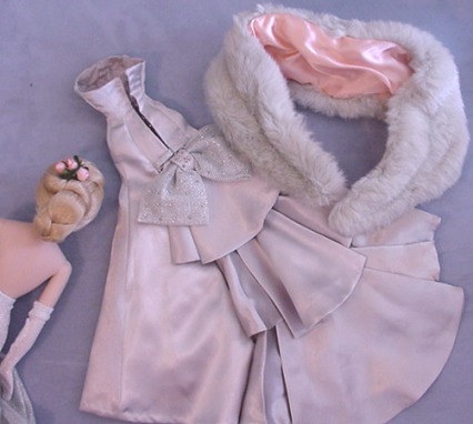 - pale gray wired "fur" stole with pink satin lining