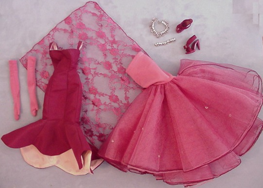 - cranberry and dark pink multi-layered tulle underskirt with rhinestones,